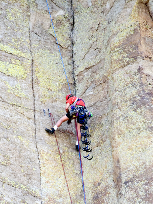 The Intro to Trad climbing is perfect for anyone looking to upgrade from gym-to-crag climbing. The Customized Day of Climbing With a Private Guide is ideal for both beginner and intermediate climbers. The Multi-Pitch Course is for intermediate to experienced climbers. You will need a good level of fitness to accomplish this climb as you will be moving for a minimum of three hours on the rocks plus some additional hiking. Even though rock climbing is all about using good movement technique rather than muscling up a cliff using brute strength, multi-pitch climbing will test you. Be prepared for a full day of strenuous climbing.